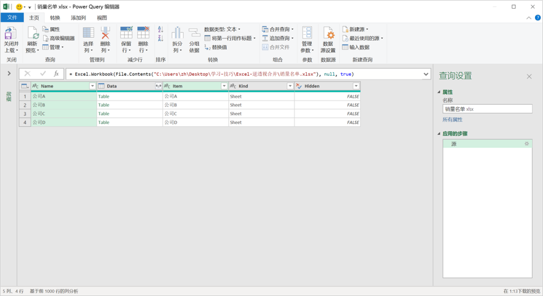 PQ逆透视数据列