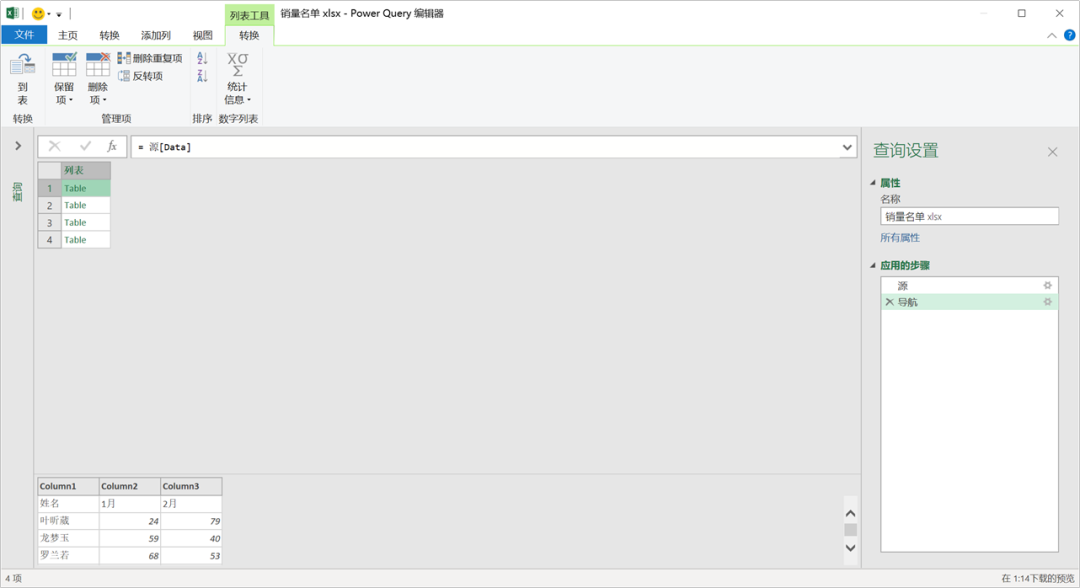 观察下数据,插入一个新步骤提取「Data」列。