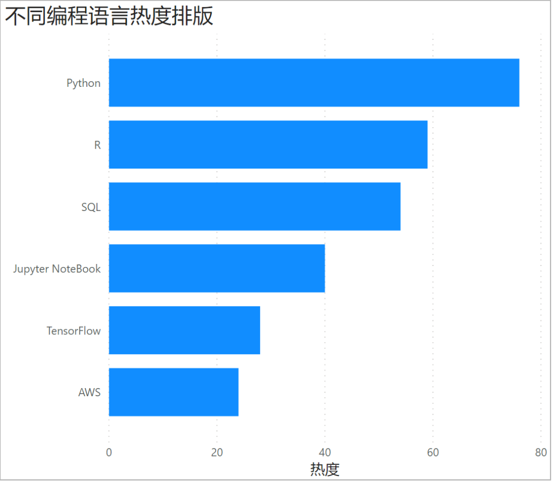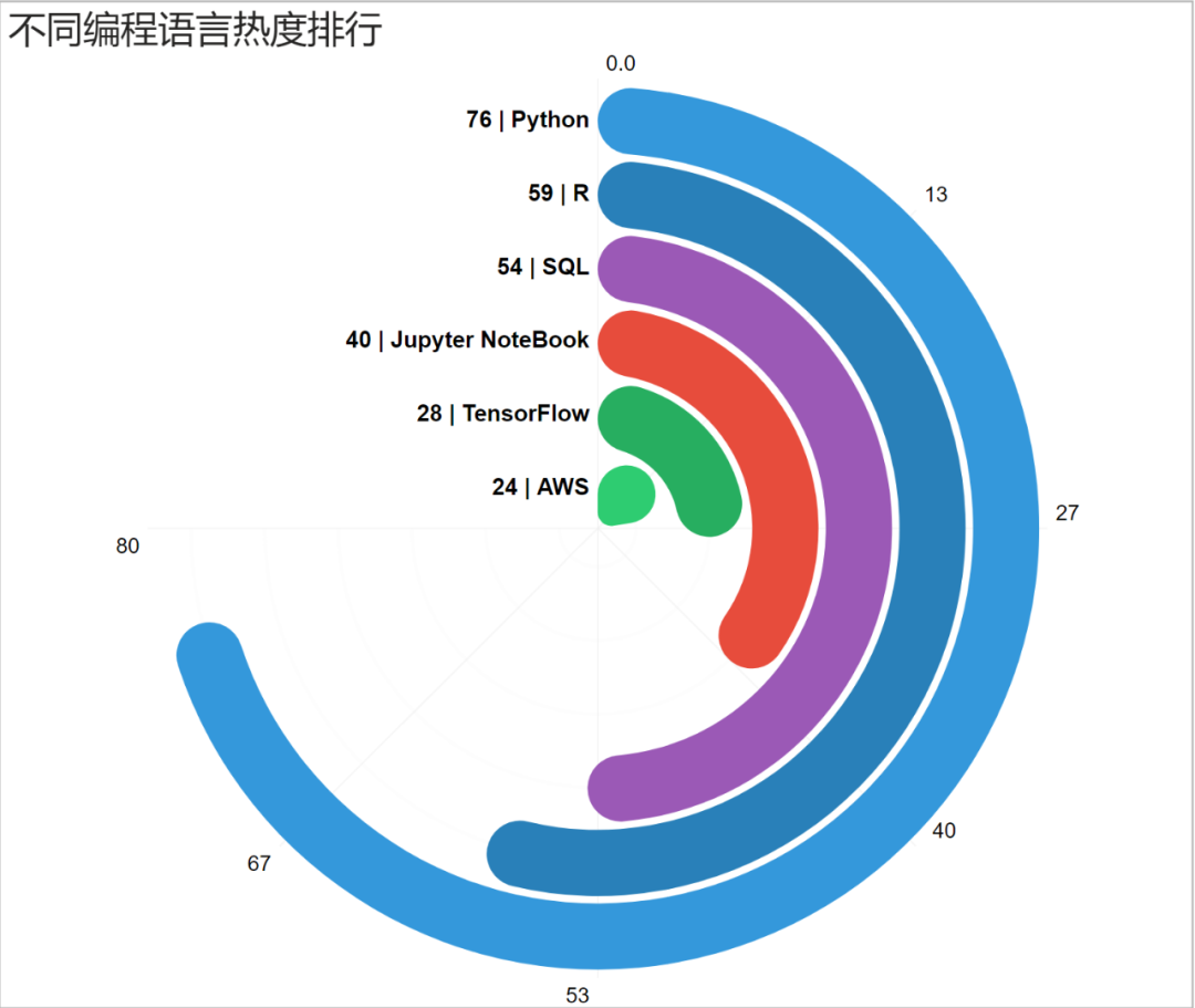 例如针对「不同编程语言的热度排行」,制作成条形图长这个样子: