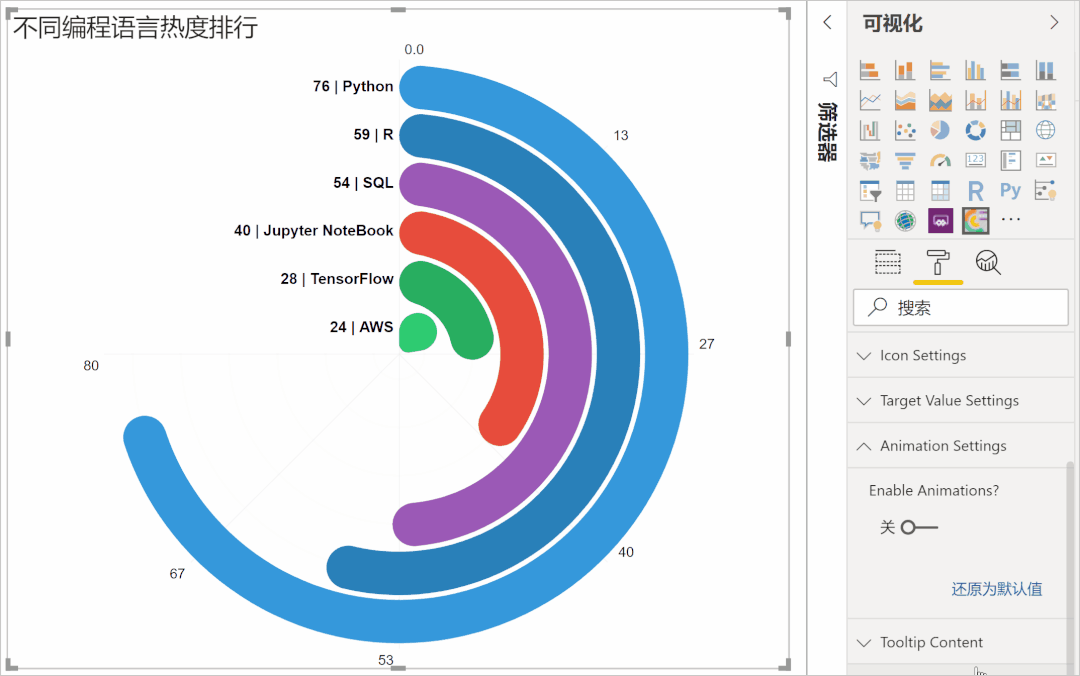 是不是非常炫酷,而且「径向条形图」还可以放大「大数值」,缩小「小数值」,在某些场景下,能起到突出重点的作用。