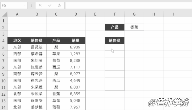1. 第 1 个参数我们输入返回的区域,即销售员列;