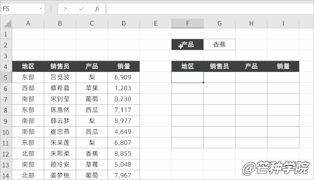 什么是「任一条件」呢?比如我想查询“西部”或者“香蕉”的销售记录,这里的“或者”就是任一条件。