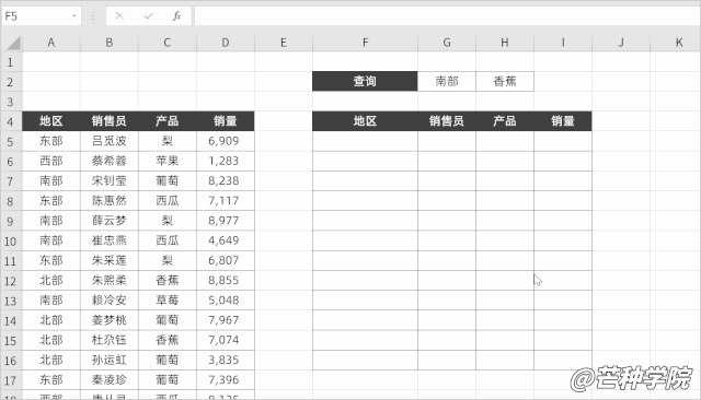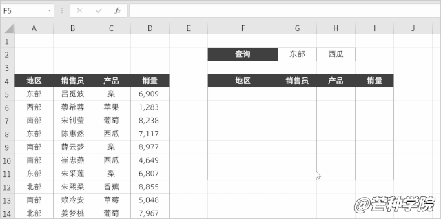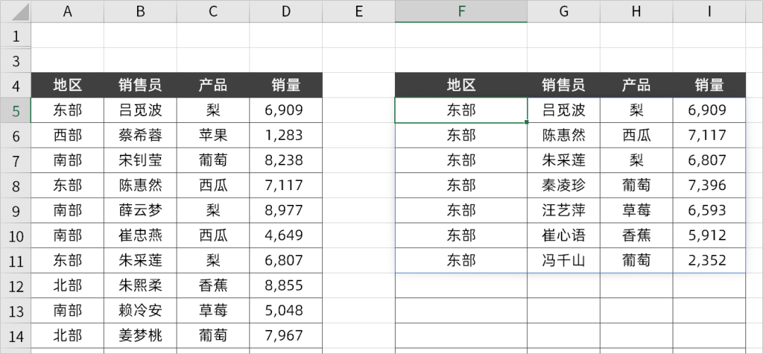 例如想要找到“东部地区梨的相关销售数据”,改动公式为: