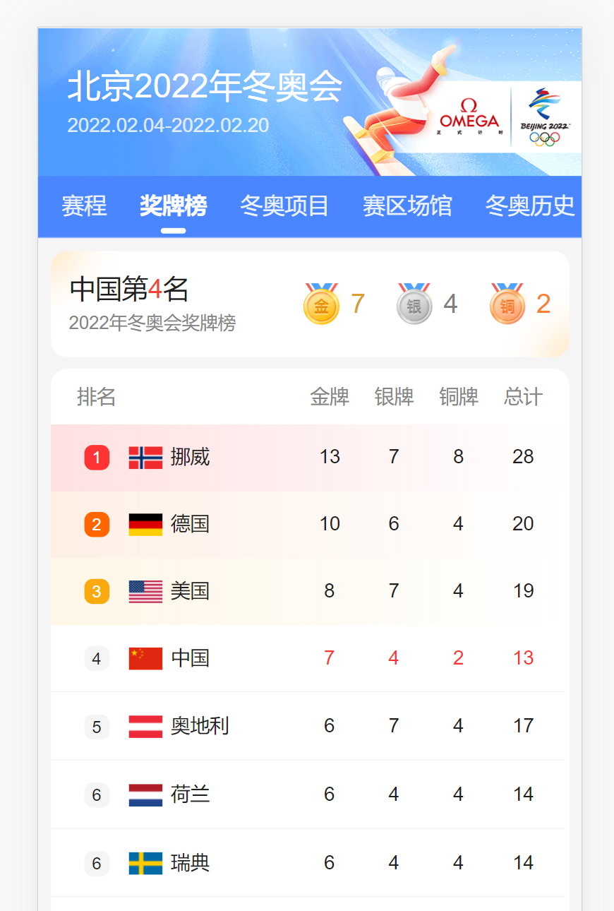 除此之外,作为一位数据可视化的狂热爱好者,意外发现冬奥会的奖牌榜也非常好看!