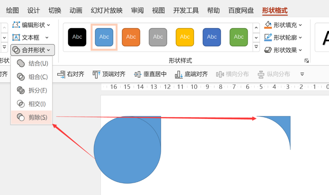 圆角的制作也很简单,在PPT中使用「布尔运算」即可得到,如下: