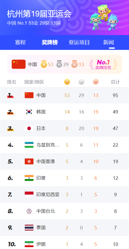 作为一位职场博主,在冲浪的时候,竟然意外地发现亚运会的奖牌榜也非常好看!
