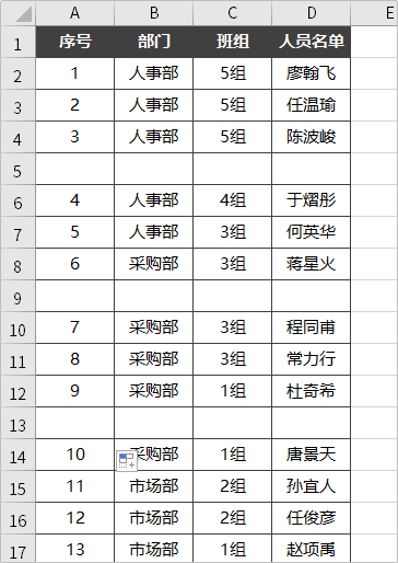 如果来了解下隔空行填充连续序号的意思,例如下图,如果存在空行,则中间空行不进行序号填充,需要如何实现呢?