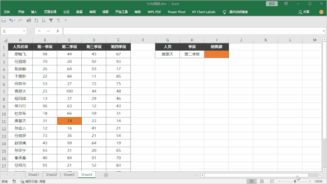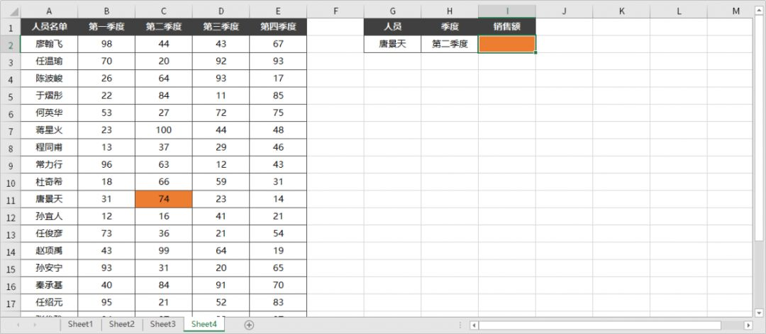 例如下方想根据「姓名」和「季度」来查询销量: