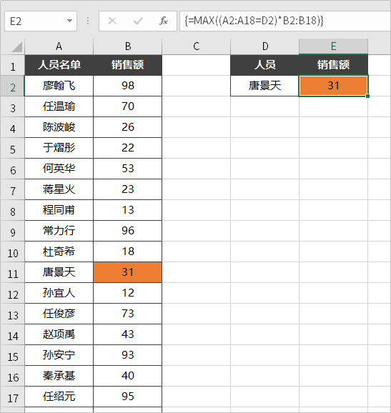 如果条件成立,那么计算出来的结果就不为0,否则就是0,最后通过MAX直接取出最大值即可。