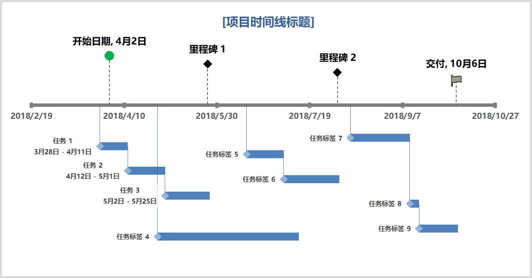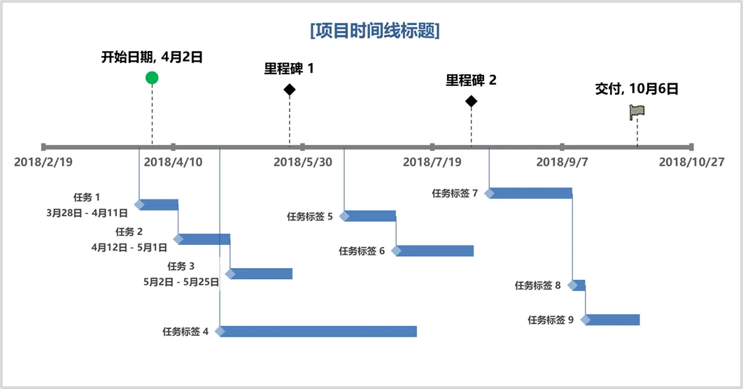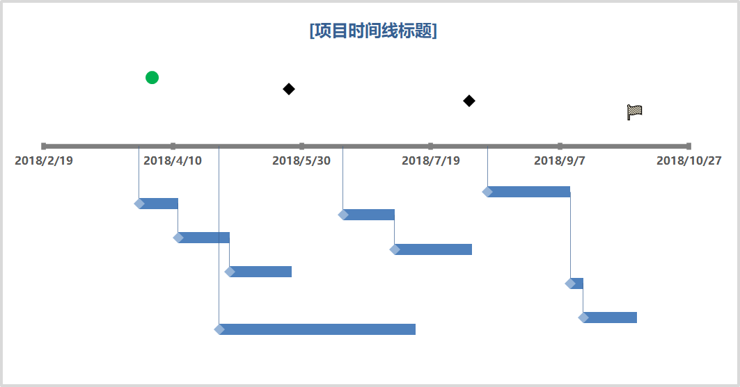 这类甘特图使用「堆积条形图」来进行模拟,那么像昨天分享的这种两侧+里程碑的另类甘特图应该如何制作呢?