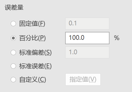 另外这里的垂直误差线选择100%即可。