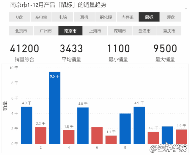 在之前的推文中,小北分享过在图表中将下跌的数据单独标记出颜色,更方便观察数据,效果如下(某位小伙伴Boss的小需求)。