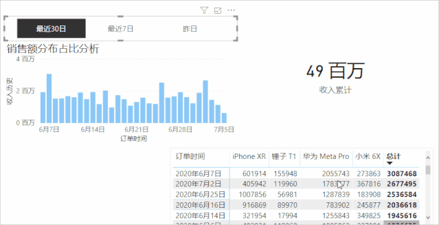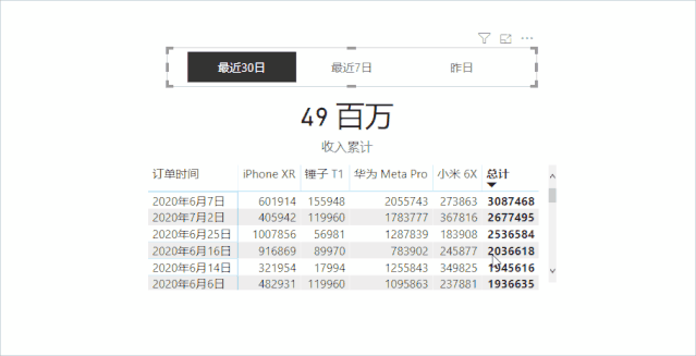 在前面的推文中,我们分享过利用动态组件来切换显示的维度、切换展示的指标,在群里收到一位同学提问,能否利用「切片器」来展示昨日、最近7日、最近30日的相关信息。