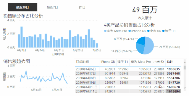 最后将需要添加的图表补充完整,就可以得到这样一份动态展示不同时期数据的仪表盘啦,是不是非常简单呢?