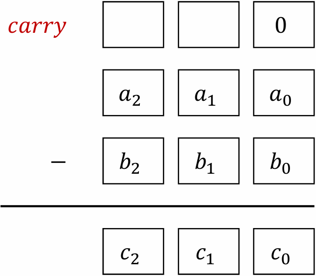 • taibi+carryt \leftarrow a_i – b_i + carry //t{2,1,0,1}t\in\{-2,-1,0,1\}