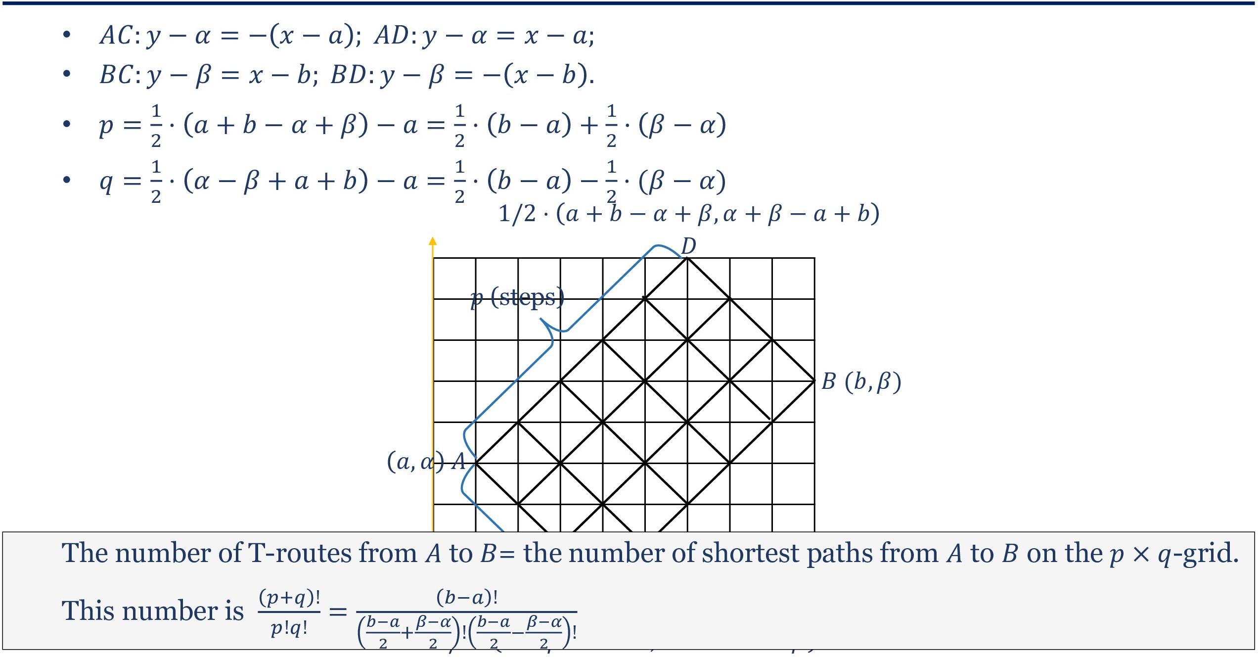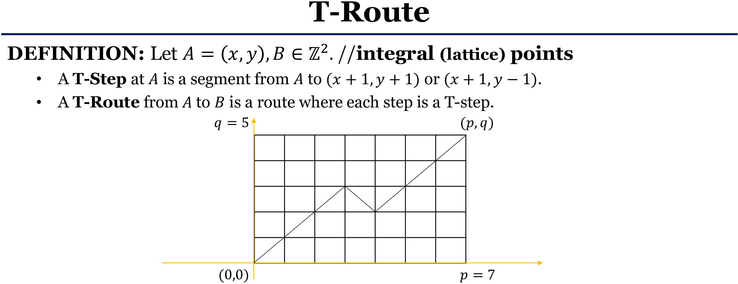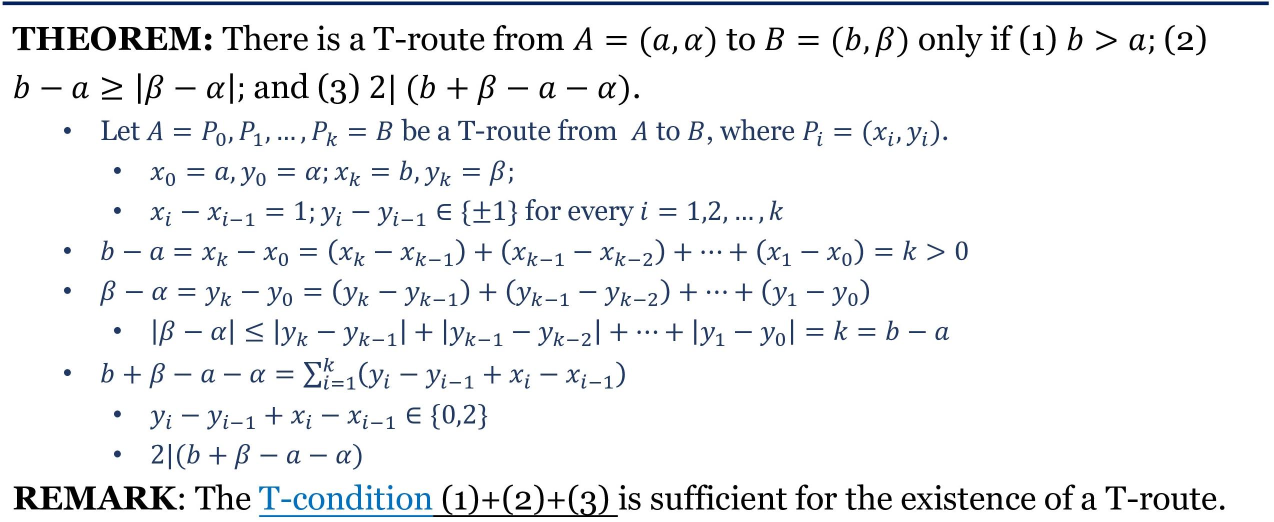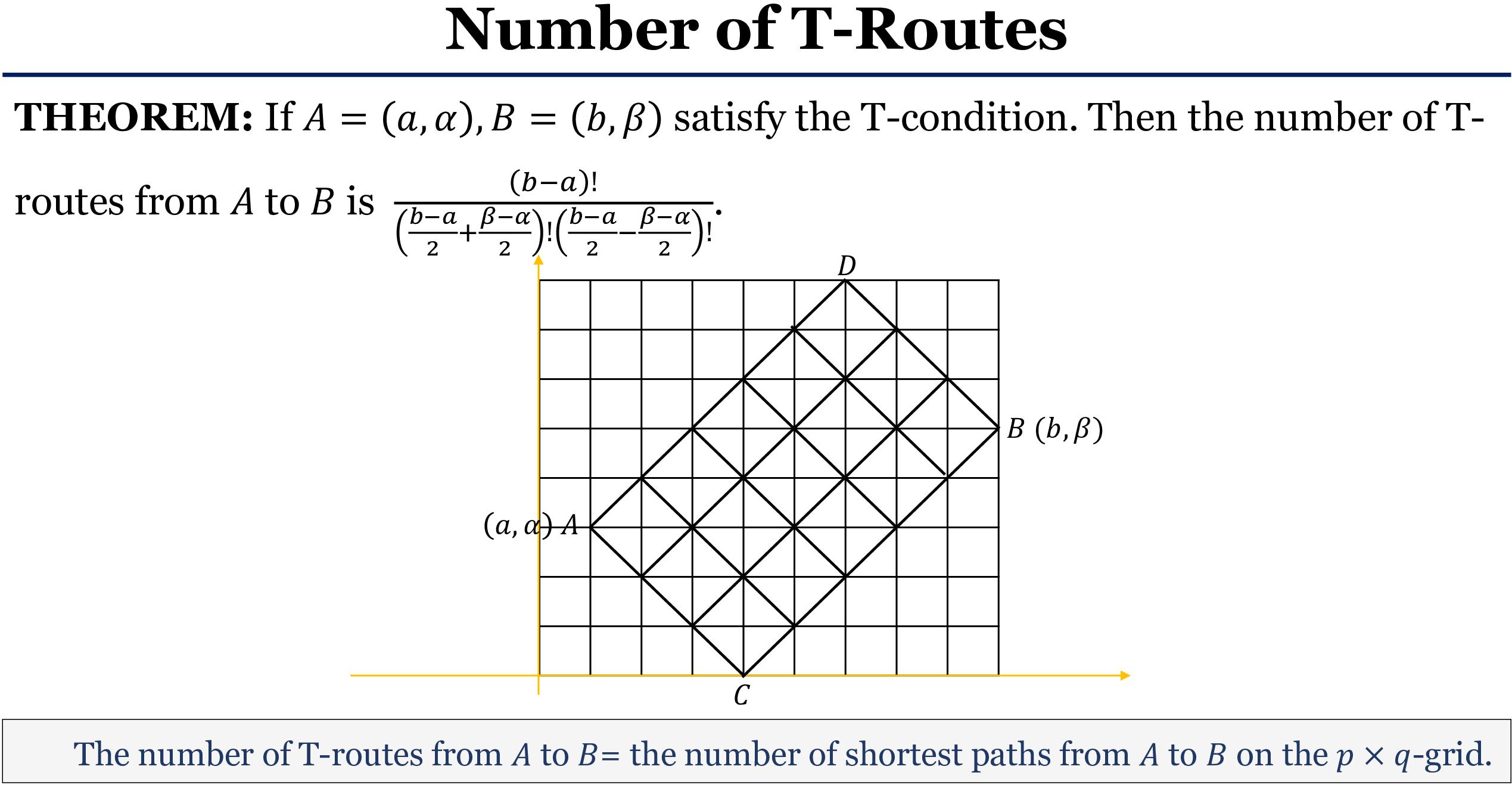 THEOREM: Let satisfy the T-condition, where . Then # of T-routes from to that do not intersect the x-axis is