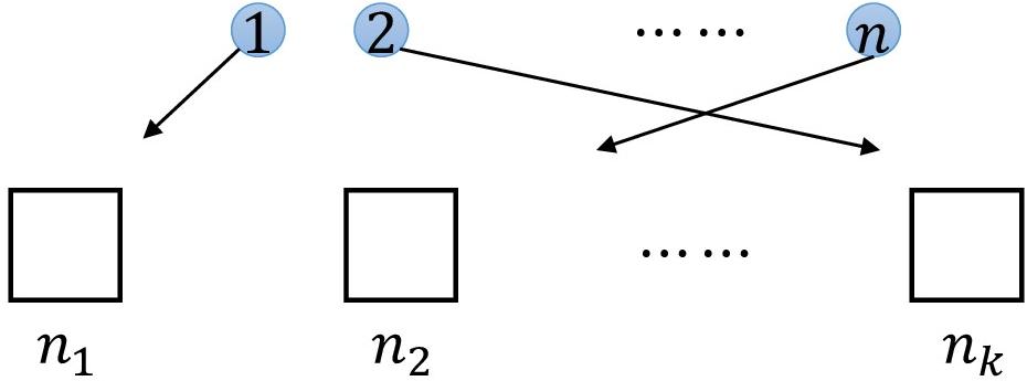 : the # of ways of distributing labeled objects into labeled boxes such that no box is empty